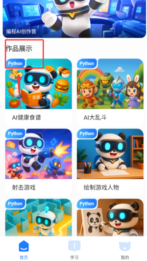 3、作品展示区汇集平台学员的优秀编程项目,支持浏览点赞并获取创作灵感。
