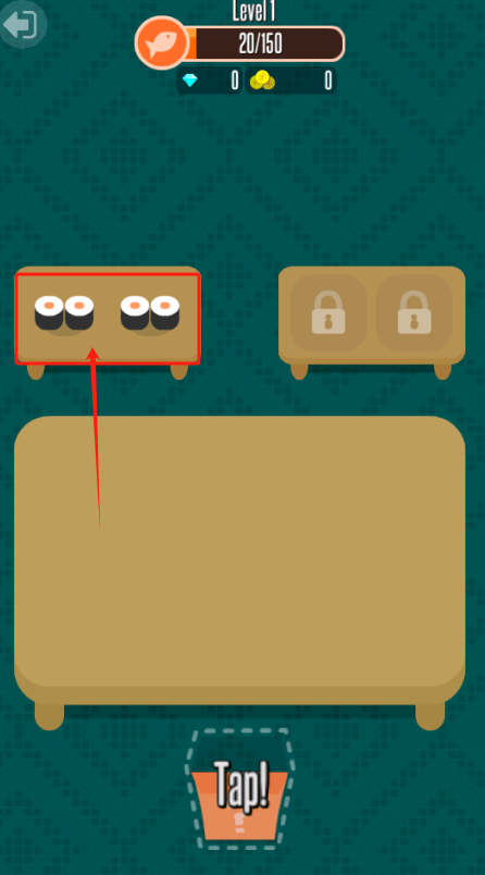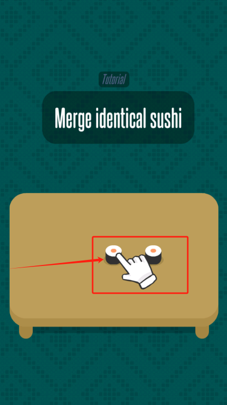 1、把两个相同的寿司拖到一起合并,完成教学任务。
