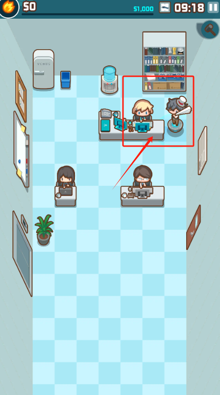2、看右上角显示5万1千块钱,冰箱和书架可以互动,时间显示早上9点18分。