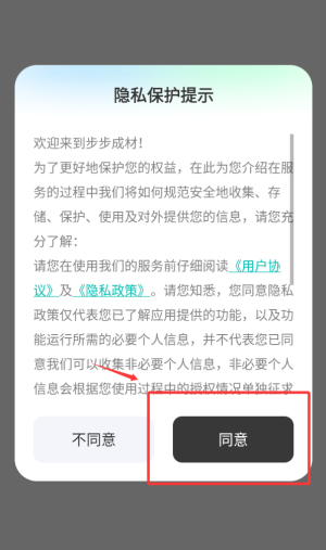1、首次启动需阅读并确认用户协议,点击同意按钮后即可进入应用主界面开始使用各项功能。