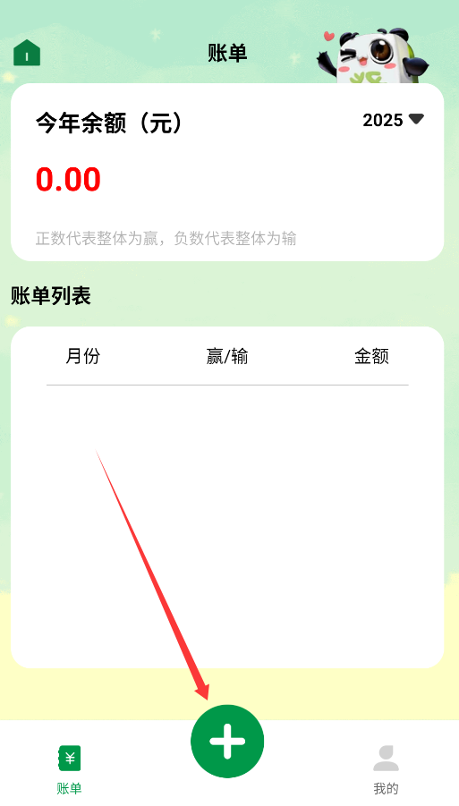 2、点击底部圆形"+"按钮跳转到添加账单界面。