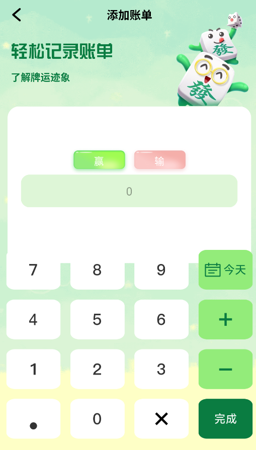 3、每局结束即时保存数据,输入输赢金额(正数为赢,负数为输)。