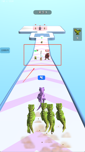 模拟恐龙王者路是将跑酷与策略塔防相结合的休闲闯关游戏。玩家将操控一只小恐龙在复杂多变的地图中奔跑、收集同类,逐步壮大队伍提升战力。途中不仅要躲避障碍机关,还要击败各种野兽敌人,最终抵达战场完成合并与战斗。