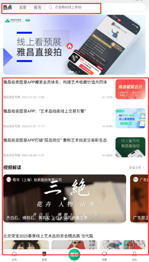 1、启动雅昌拍卖APP后,在首页导航栏点击"资讯"选项,进入艺术行业信息页面。