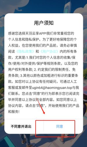 1、首次启动需阅读并确认用户协议条款,完成授权验证后即可进入应用主界面开启云端旅行体验。