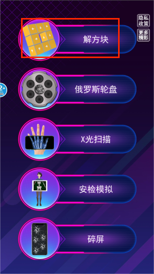 2、在模式选择界面中,找到"解方块"选项开启独特的箭头解谜玩法。