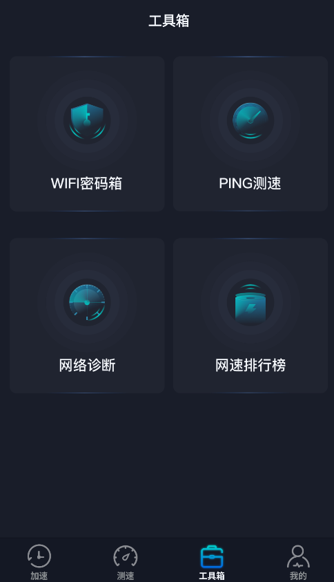 3、工具箱提供多种实用功能,包括WiFi密码管理、网络连通性测试及故障诊断工具。