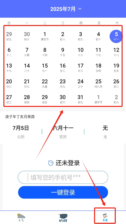 3、要是想看哪天天气,进入日历页面,点击对应日期,天气信息马上呈现。