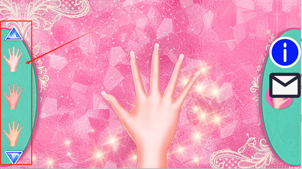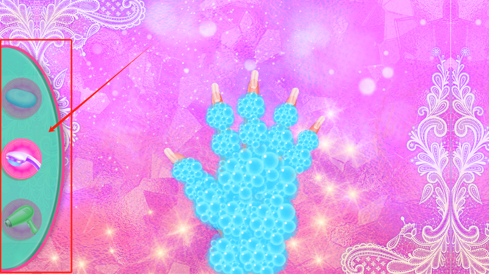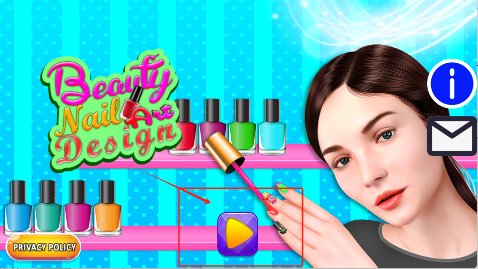 1、点红色播放按钮开始游戏,架子上指甲油随便挑来设计美甲。
