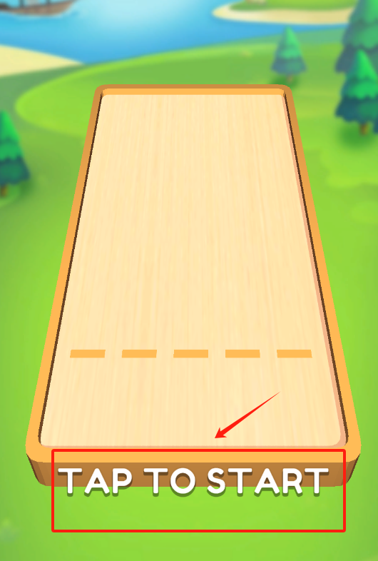 1、看到木板赛道上的白色TAP TO START字样,用手指点红框标记处,就能开始游戏啦。