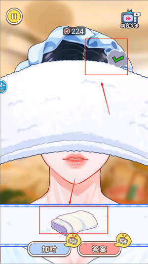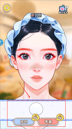 3、根据提示使用合适的道具完成清洁、去黑头、补水等步骤,顺利通关后即可获得奖励解锁新道具与皮肤。