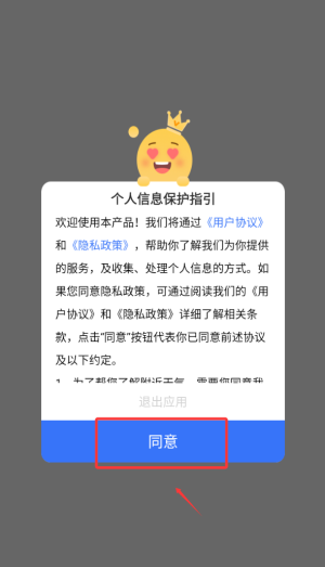 1、首次运行需确认用户协议,授权后即可进入应用主界面开始使用各项功能。