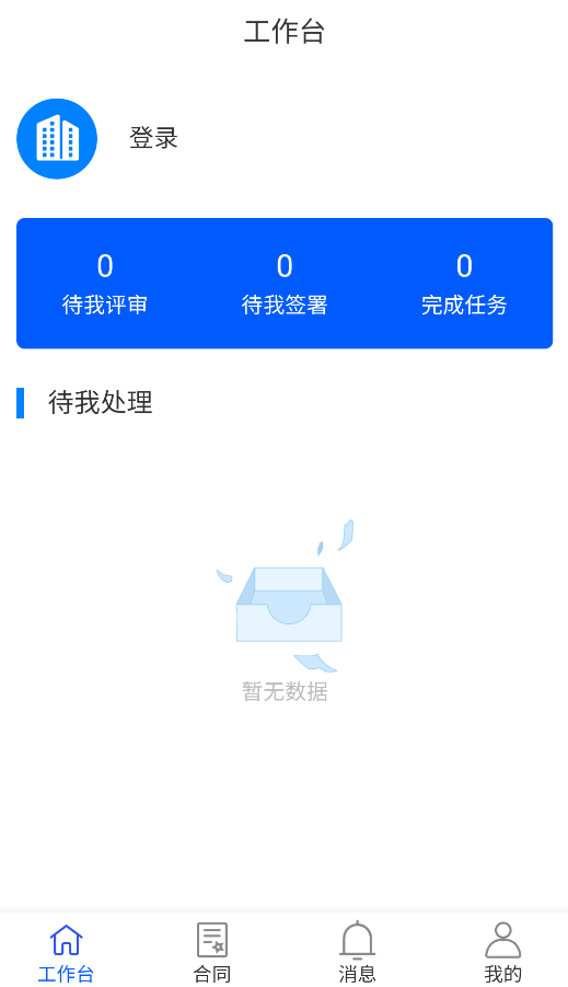 1、打开应用后,在首页工作台可快速查看待审批文件、待签署合同以及待处理任务的实时状态。