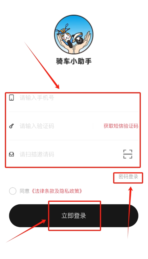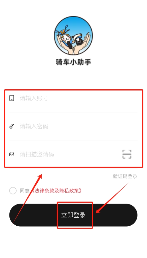 1、先在应用商店找到骑车小助手,下载安装完成后点击图标打开,进入软件的登录界面准备进行登录操作。