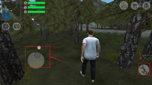 2、左侧是角色移动摇杆,右侧为射击与互动按钮,界面顶部显示当前血量、弹药与任务进度。