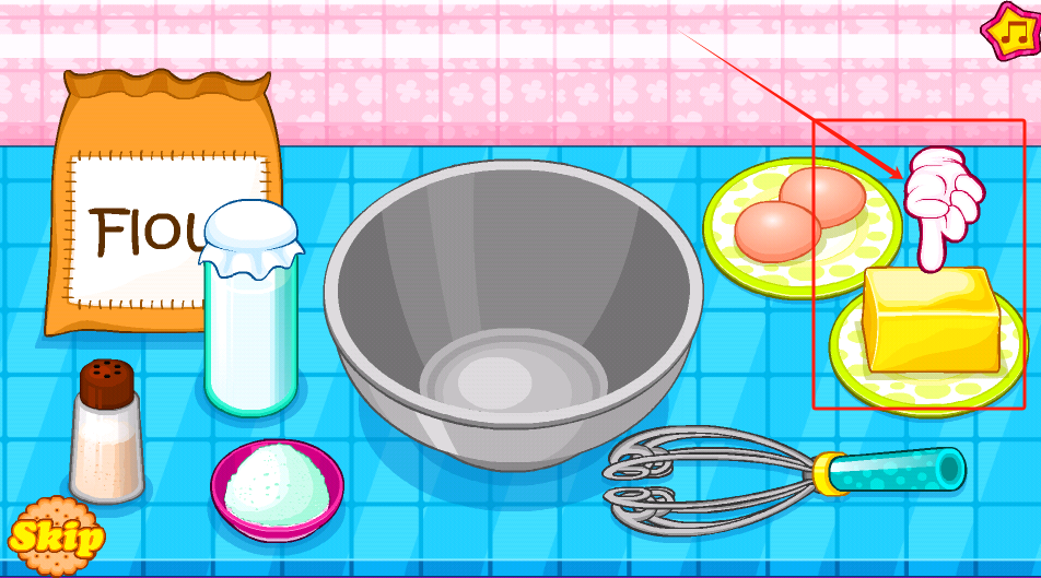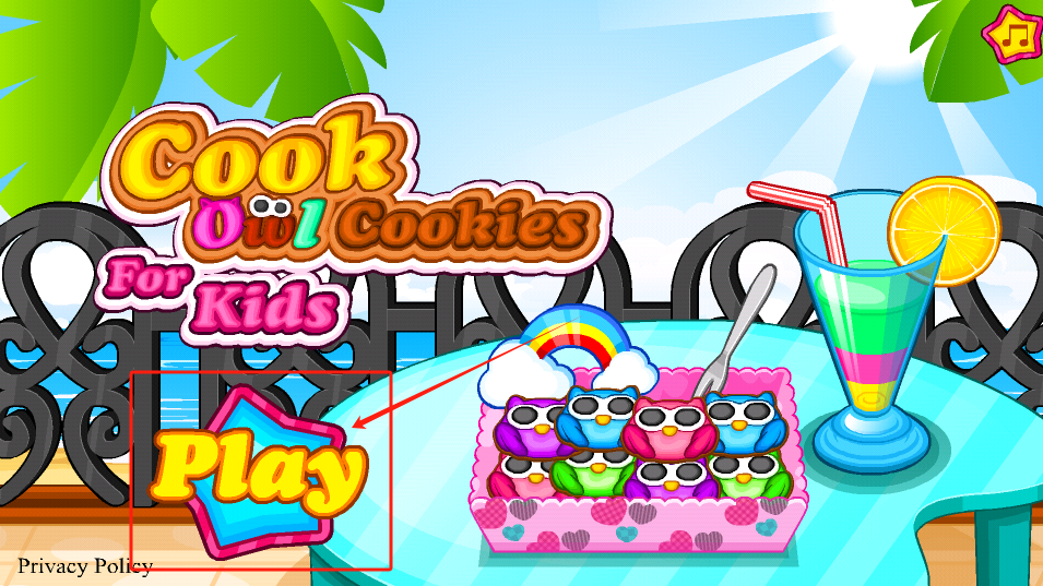1、点击蓝粉相间的Play按钮,开始制作猫头鹰饼干游戏啦。