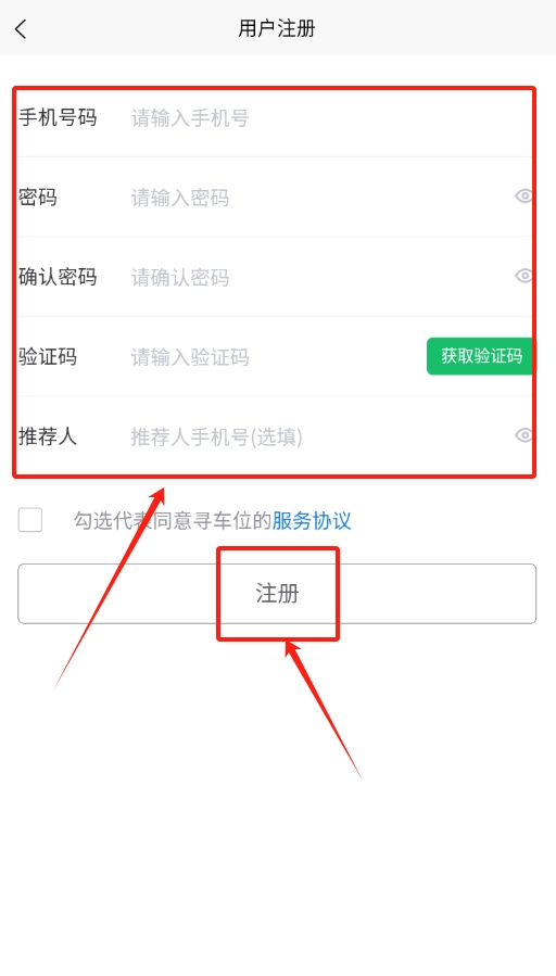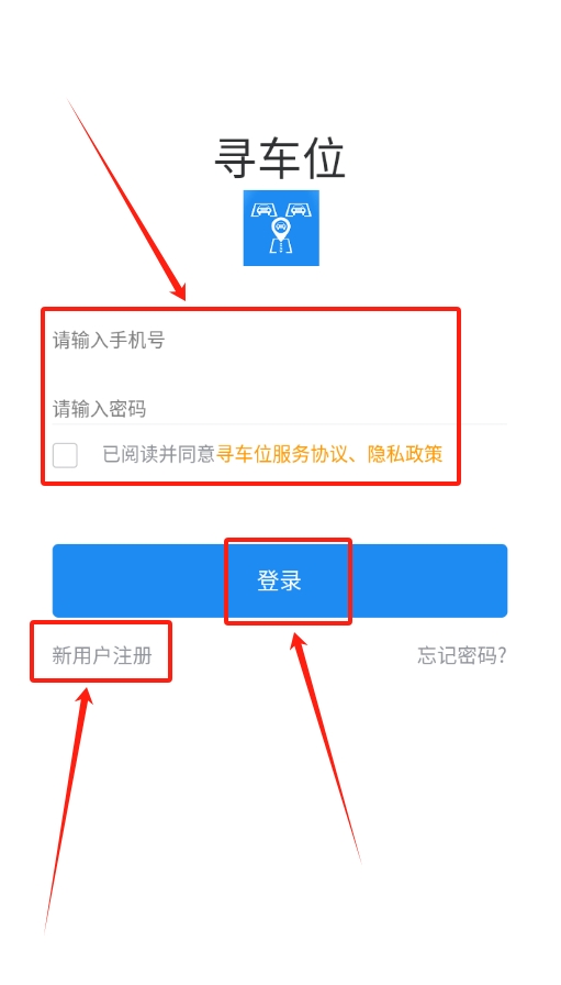 3、在登录页面输入自己的手机号和设置的密码,确认信息正确后点击登录,就能进入软件主界面使用找车位等功能。