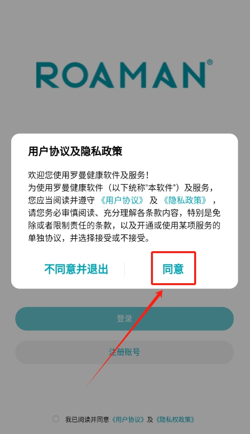 2、打开后会看到软件协议,直接点一下同意就行,不用想太多,这是使用前必须走的步骤。
