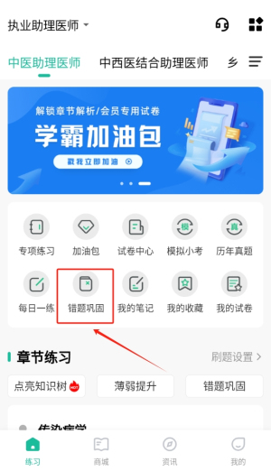 1、章节练习按临床医学、基础医学等科目分类,支持按知识点筛选题目进行专项训练。