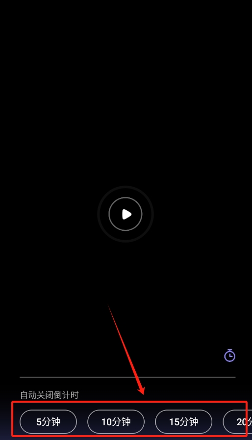 4、设置好时间之后,在页面上找到斜三角形状的按钮,点一下这个按钮,软件就会开始播放助眠音,帮你放松入睡啦。