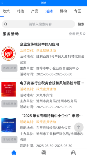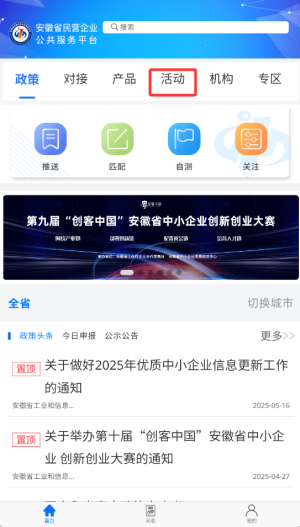 2、在首页导航栏点击"活动"选项,查看最新的企业活动和行业资讯。