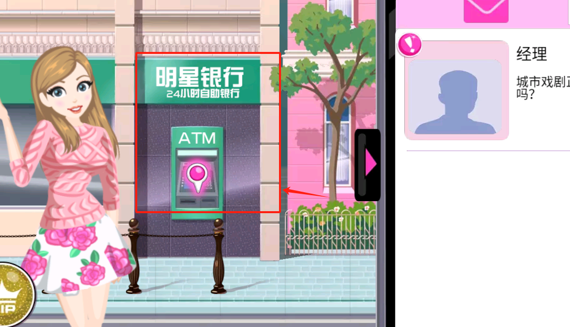 1、点绿色ATM机上的按键,屏幕出现选项后选取钱或存钱,像平时用真ATM一样操作就行。