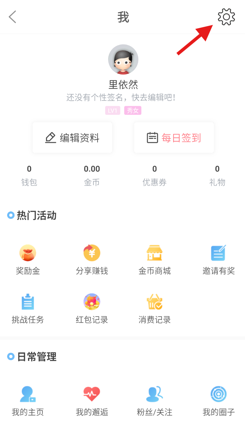 2、在 “我” 页面中,点击右上角的设置选项,进入软件的各项设置界面进行操作。