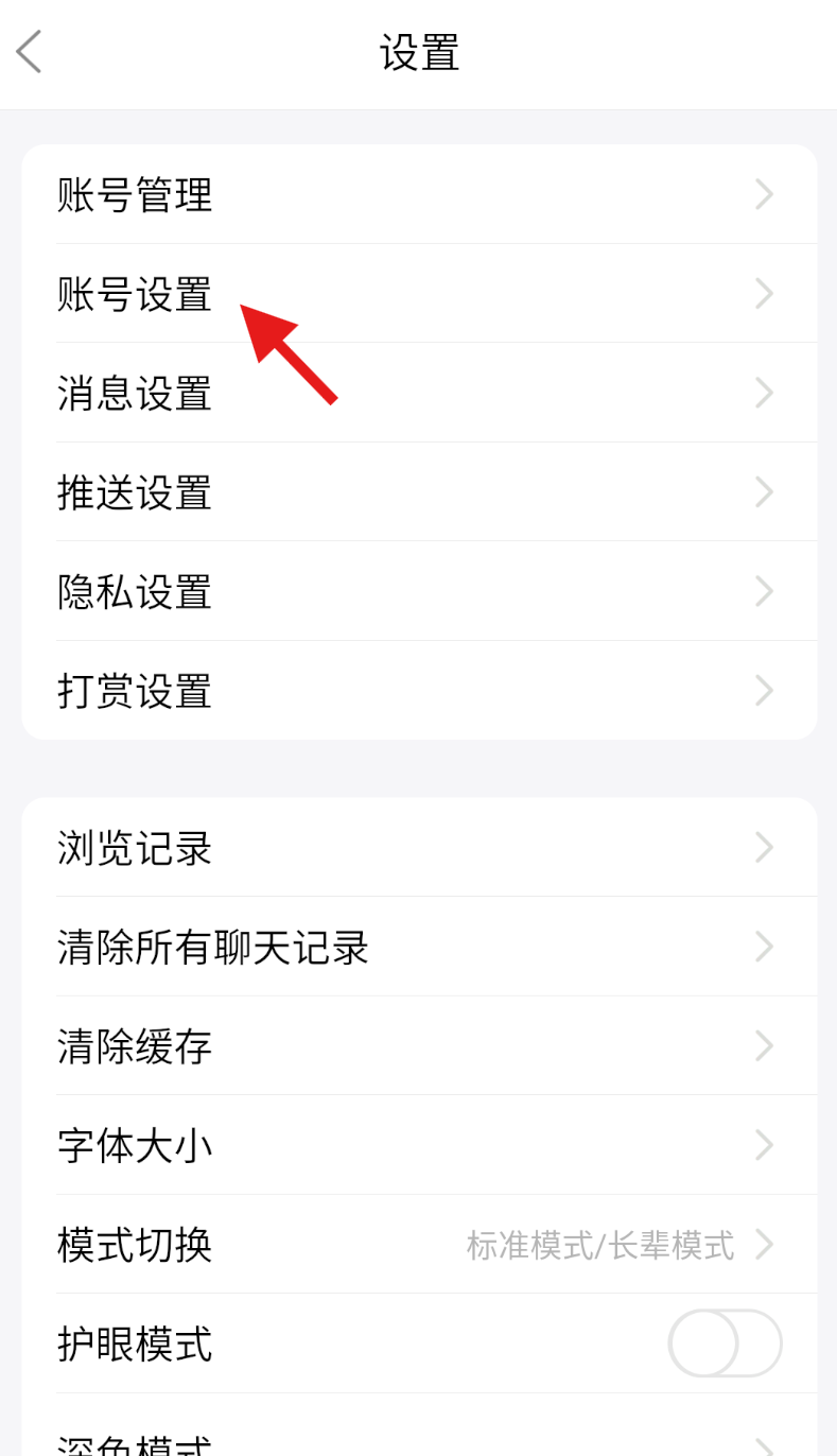 3、在设置界面里,找到并点击 “账号设置” 选项,进入与账号相关的设置内容页面。