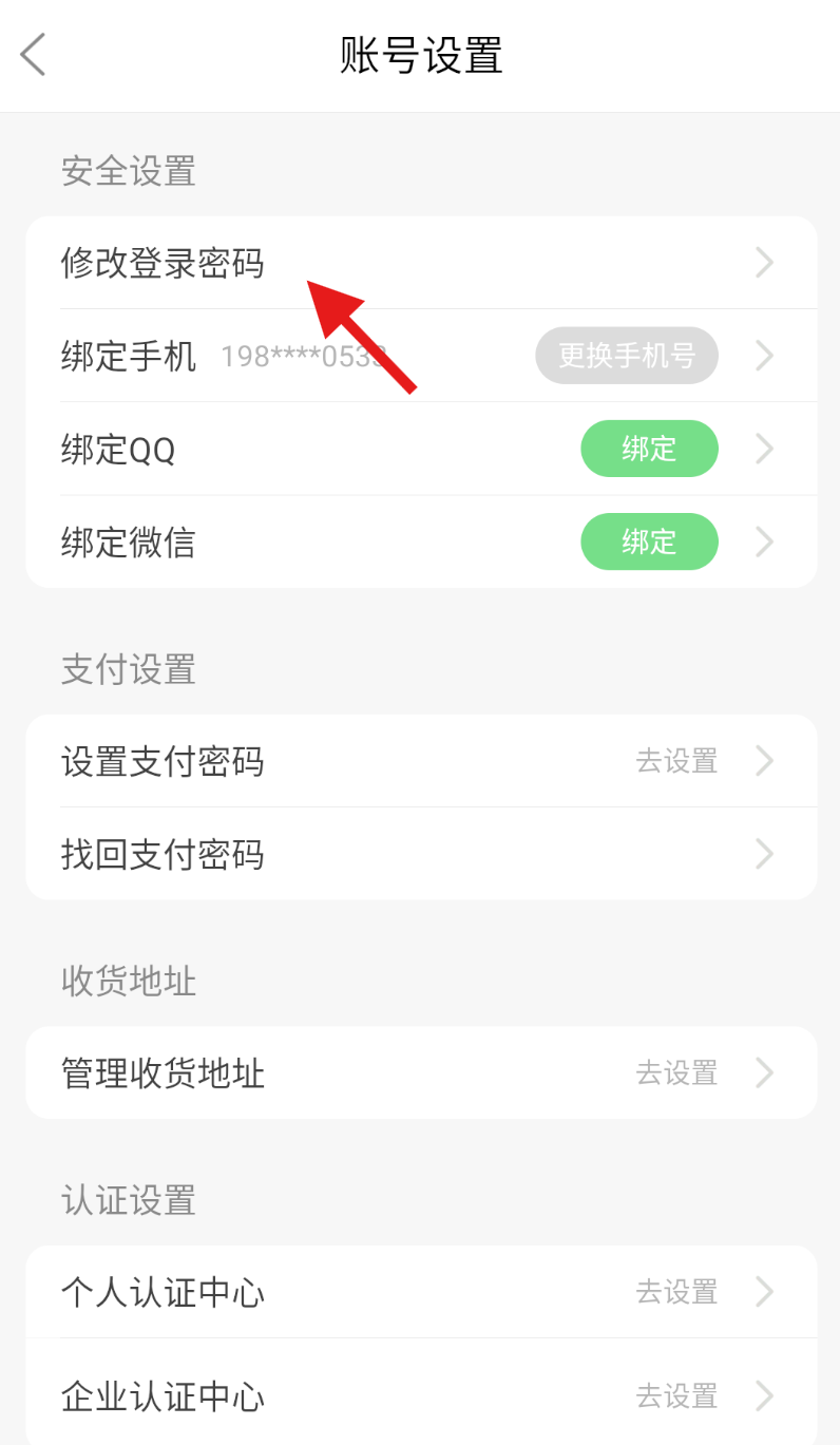 4、在账号设置页面中,选择 “修改登录密码” 这一选项,跳转至密码修改的具体操作页面。