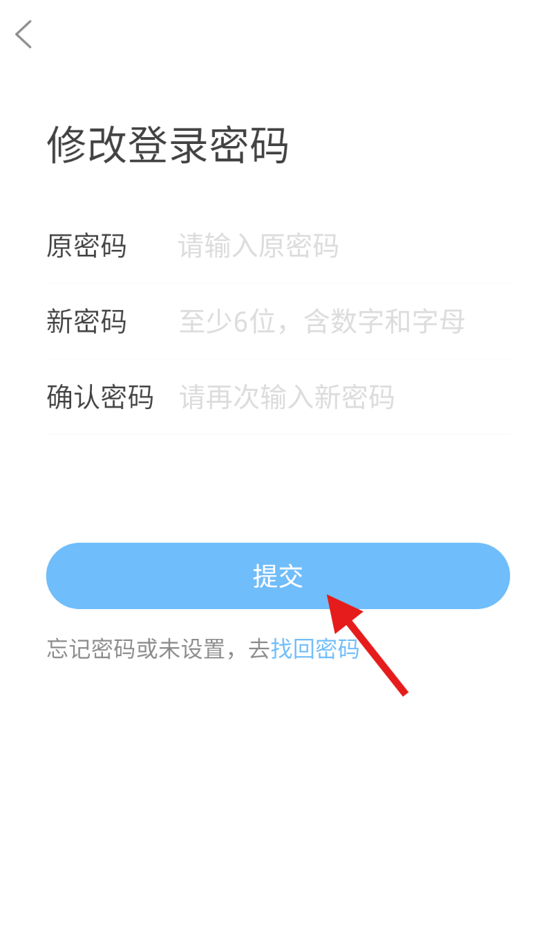 5、在该页面中,先输入原来的登录密码,接着连续两次输入新设置的密码,完成密码修改操作。