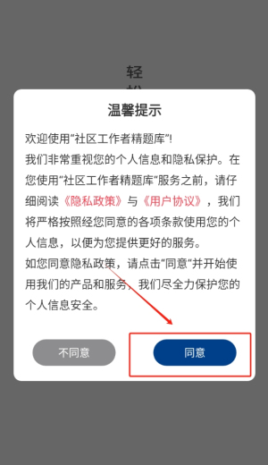 1、点击同意按钮,顺利进入应用,开始您的备考之旅,软件将提供全方位的学习支持与资源。