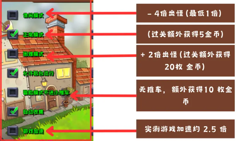 冒险模式不送小推车:无推车,额外获得10 枚金币