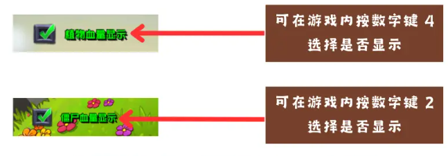 植物血量显示:可在游戏内按数字键 4选择是否显示;