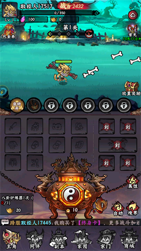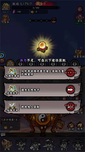 3、主线关卡采用自动战斗的方式,通过战斗可以获取体力使用八卦炉;