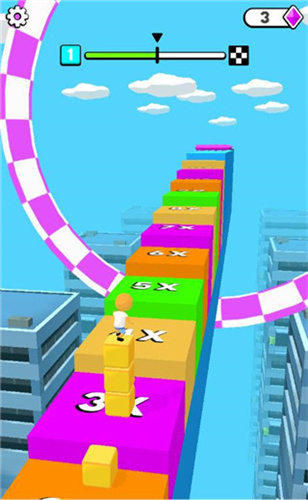 2、游戏以左右划动的方式控制角色的移动,通过收集沿途方块以垫高角色越过障碍;