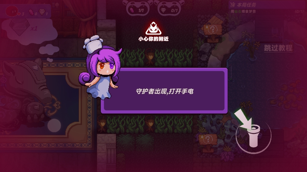 2、守护者的任务是迅速捕捉潜入者,阻止他们收集宝石,并避免被手电筒照射。守护者拥有如设置陷阱和门锁等强大技能。测试中提供了三名不同守护者,玩家可以在主界面的装扮部分切换守护者外观。
