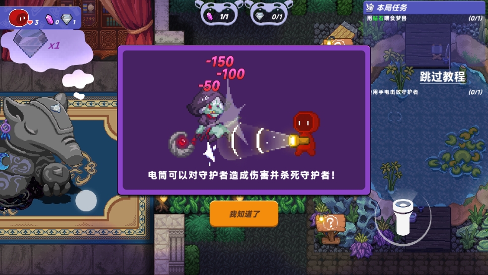 5、使用手电筒对守护者造成伤害,顺利地击败消灭守护者;