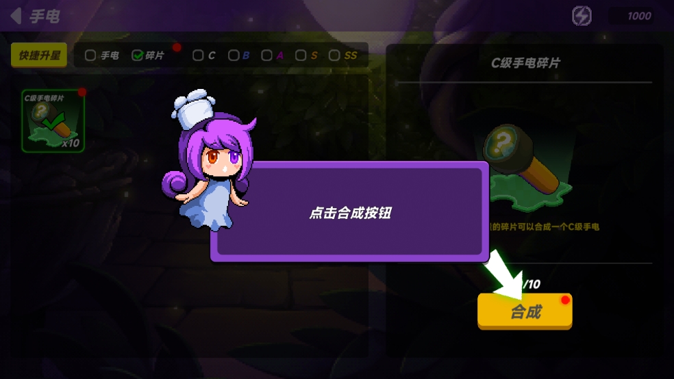 7、有足够的手电碎片就可以进行合成,通过合成来获得全新手电;