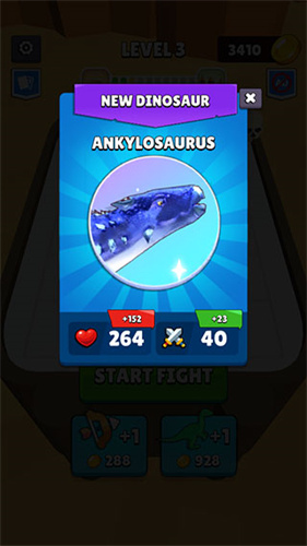 2、自由融合不同动物,尝试打造多样组合,不断提升恐龙能力进行战斗;