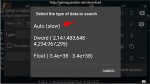 7、选择Auto就能够让GG 修改器自己搜寻游戏内可以修改的参数。