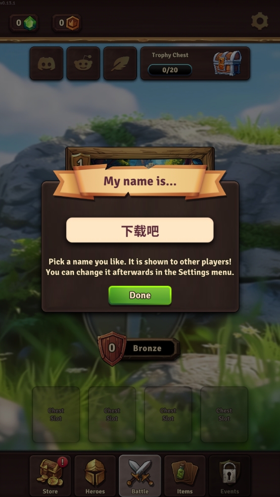 2、输入自己的游戏名字即可正式开始游戏,进行背包冒险;