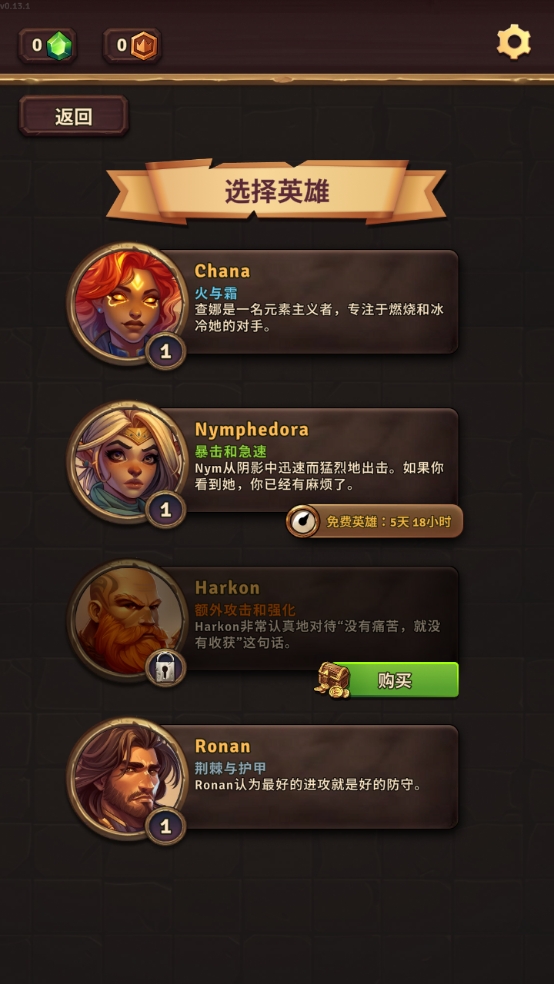 6、玩家需要选择英雄来进行战斗冒险,不同英雄都有着不同属性;