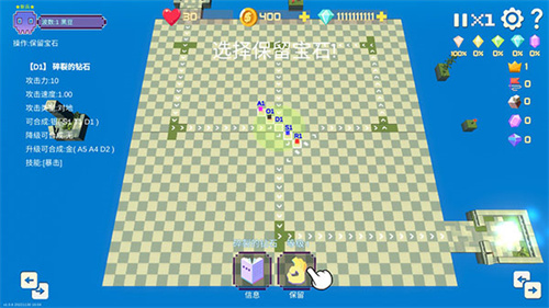 3、选择保留宝石,完成布阵,等待敌人出现后进行攻击;