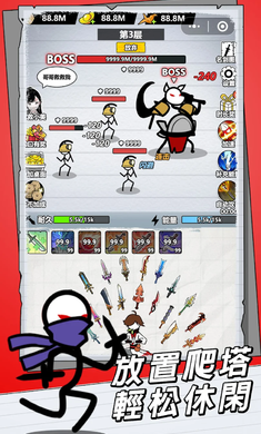 放置爬塔:轻松的放置爬塔旅程,根据想法来选择自动战斗,击败boss赢取奖励。