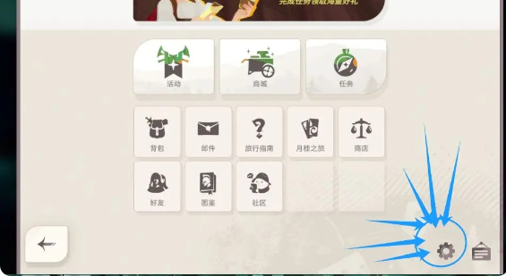 2、在菜单页面,继续点击右下角齿轮【设置】按钮。