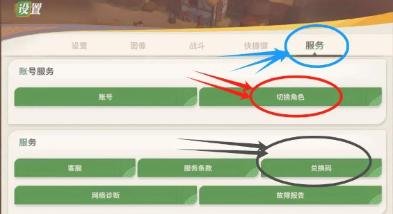 3、进入设置页面以后,可以在服务频道,找到【兑换码】按钮。