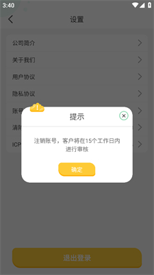 3、点击【确定】,随后将在15个工作内审核并完成注销。