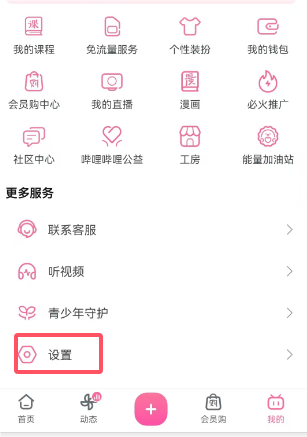 1、进入B站以后,点击右下角的【我的】,进入个人信息页面,找到底部的设置。