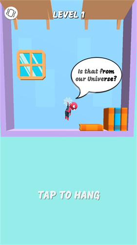 1、进入游戏后点击空白处即可开始挑战,玩家在游戏中的目的是操作蜘蛛侠进行攀爬;