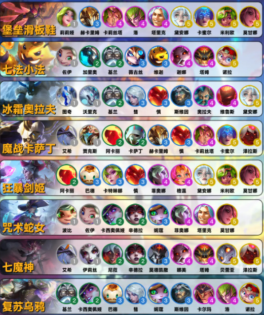 随版本的更新,全新的羁绊和调整出现,玩家可以根据下图来打造最强大的流派。